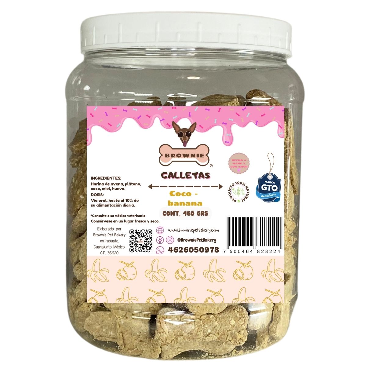 ¡Dale a tu perro un sabor tropical con las galletas coco-banana de Brownie! Este snack no solo es delicioso, sino que el coco aporta ácidos grasos que promueven una piel y un pelaje brillantes, mientras que la banana es rica en potasio, ideal para mantener la energía de tu mascota.