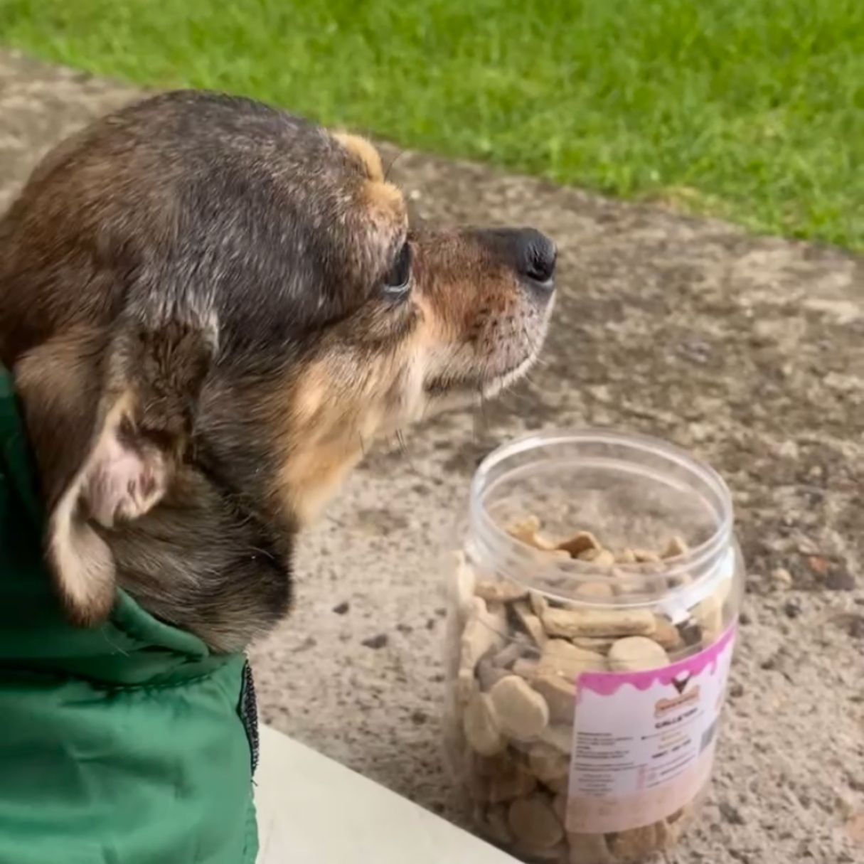 Nuestras galletas están disponibles en presentaciones de 160 g, 460 g y 1 kg, perfectas para cualquier perro amante de los sabores dulces. Puedes ofrecerlas como un premio especial, durante el entrenamiento o simplemente para mostrar tu amor. Su textura crujiente y su sabor exótico harán que cada mordisco sea un placer.