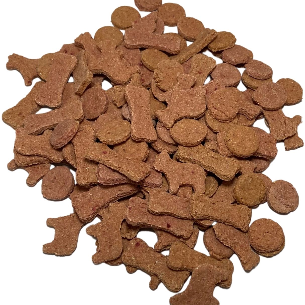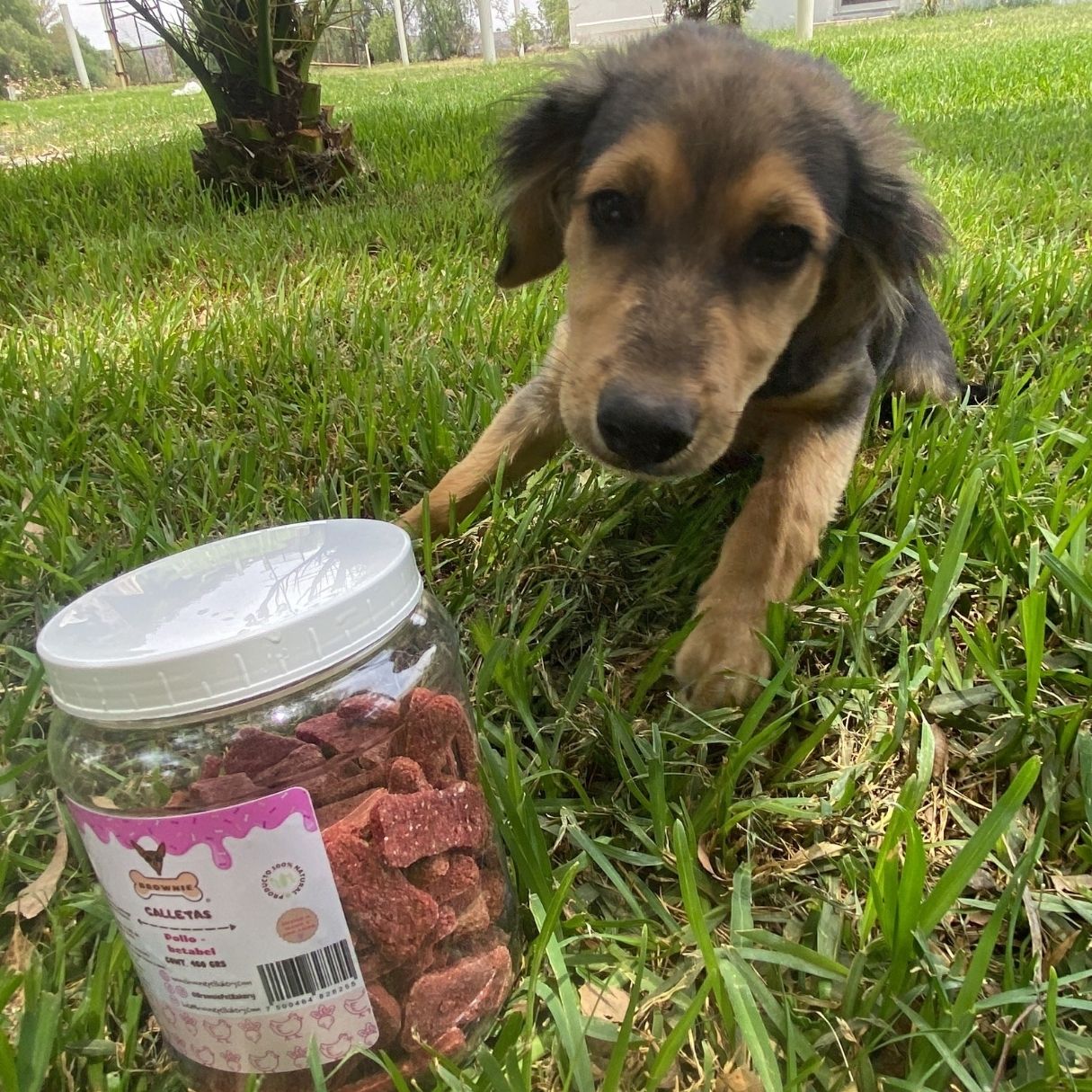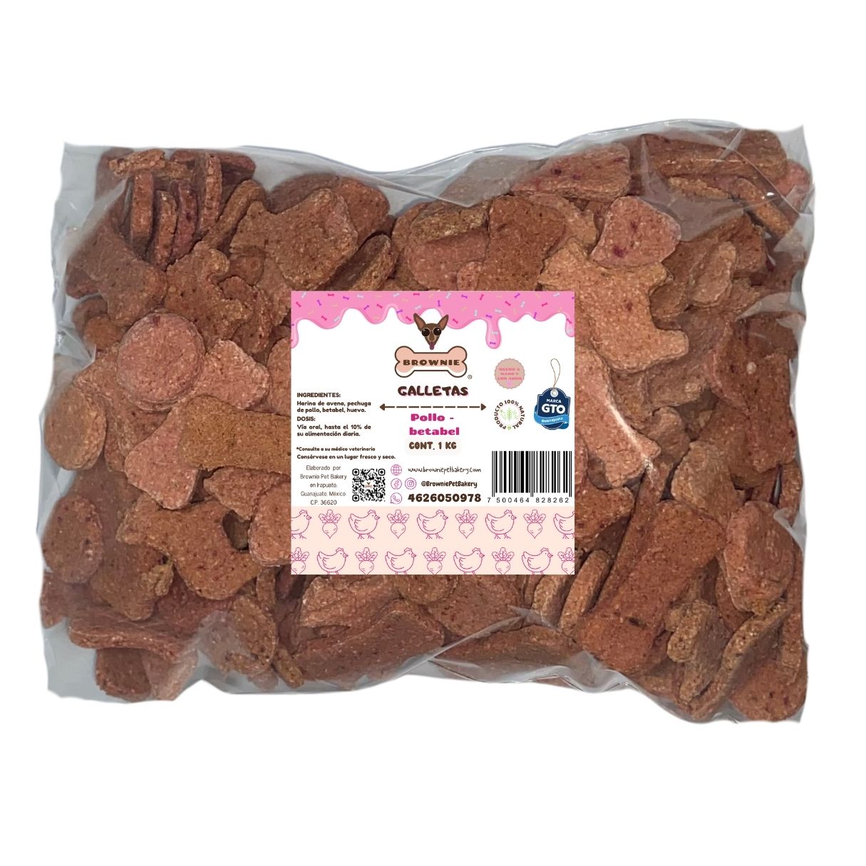 ¡Las galletas pollo-betabel de Brownie son el premio que combina salud y sabor! Con pollo como fuente principal de proteínas y betabel, que es rico en antioxidantes y fibra, estas galletas ayudan a mejorar la salud digestiva y mantener un pelaje brillante. Cada bocado es una explosión de nutrientes y sabor.