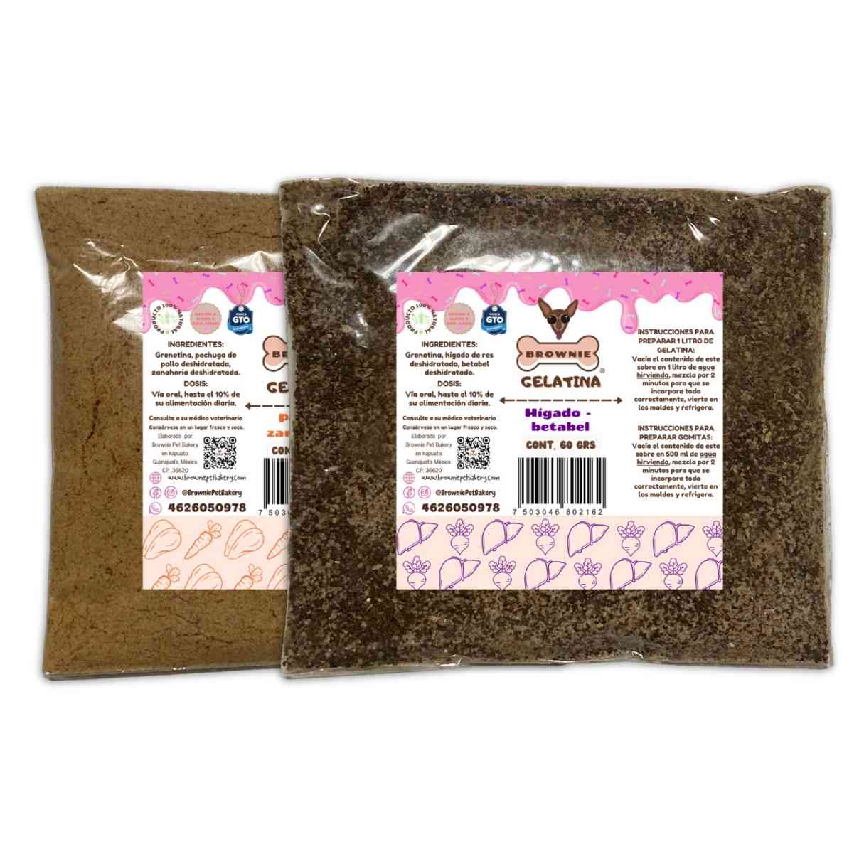 - Sabor Irresistible: La combinación de pollo con zanahoria y hígado con betabel ofrece sabores deliciosos que encantarán a tu perro, convirtiendo estas gelatinas en sus snacks favoritos.