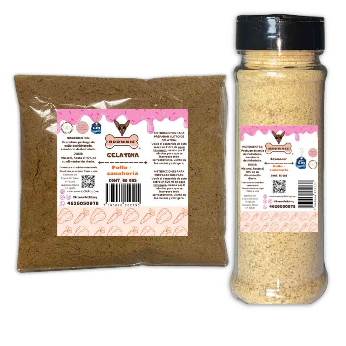 Descubre el Combo Gelatina y Sabroseador de Brownie, la forma perfecta de mimar a tu perro con un delicioso y nutritivo regalo! Este combo incluye una gelatina y un sabroseador, permitiéndote elegir los sabores que más le encanten a tu mascota. ¡Cada bocado es una celebración de salud y sabor!