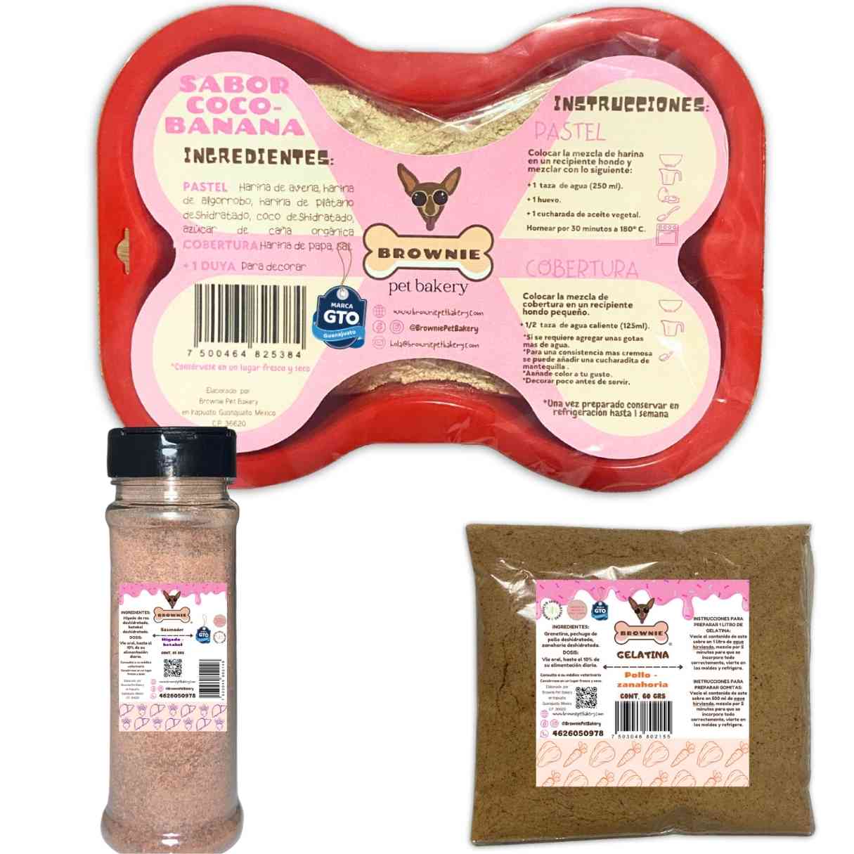 ¡Presentamos nuestro Kit Especial para Perros, diseñado para consentir a tu mascota con una variedad de opciones deliciosas y nutritivas! Este kit incluye una gelatina, un sabroseador y una harina para hacer pasteles, ofreciéndote la posibilidad de elegir un sabor de cada categoría. ¡Además, el kit incluye un molde para pasteles, perfecto para preparar y personalizar los momentos especiales de tu perro!